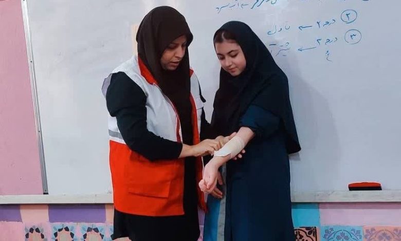 برگزاری کارگاه آموزش کمکهای اولیه در دبیرستان دخترانه آزاده رودهن به مناسبت هفته پدافند غیرعامل