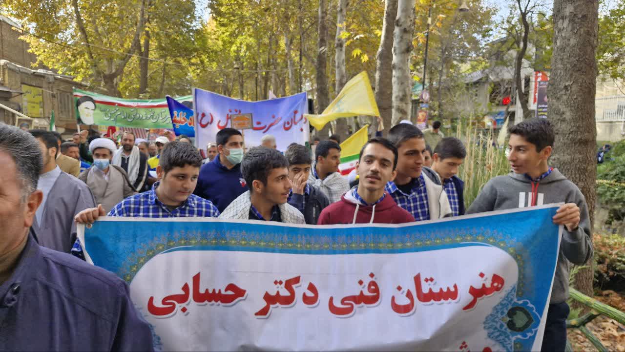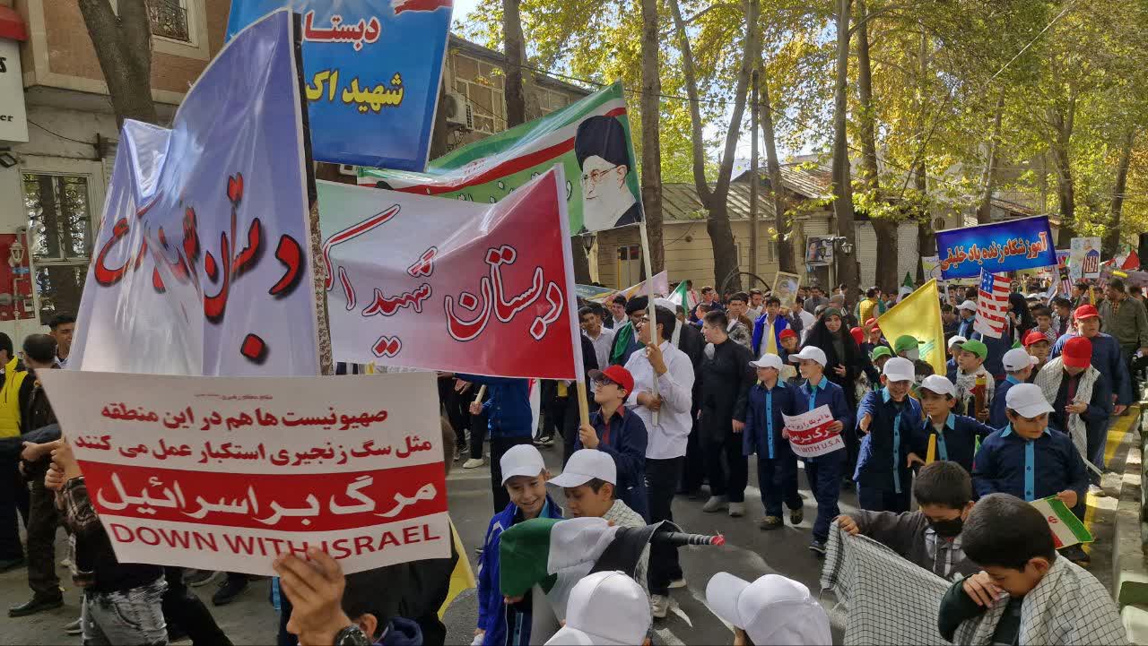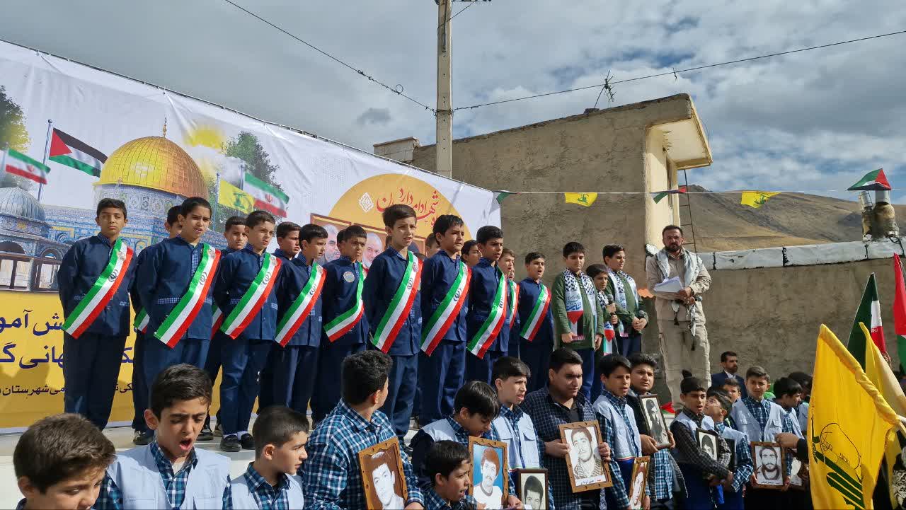 دانش آموزان با شعارهایی مثل مرگ بر آمریکا، مرگ بر اسرائیل، مقاومت همیشه قوی و پر توان است، سید حسن نصرالله شهید راه قرآن، فاتح جبهه حق حزب الله لبنان، حمایت خود را از جبهه مقاومت اعلام کردند.