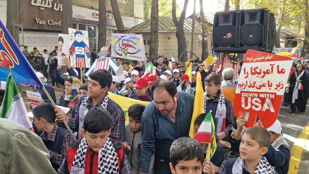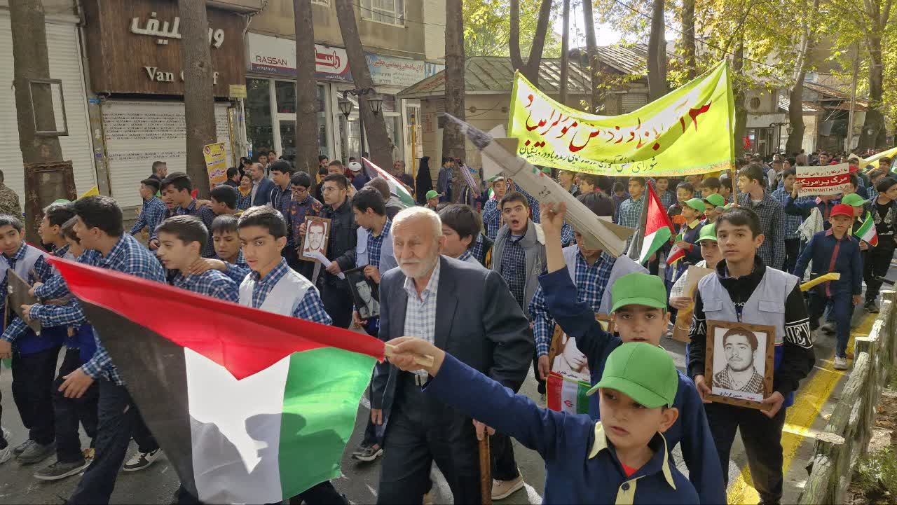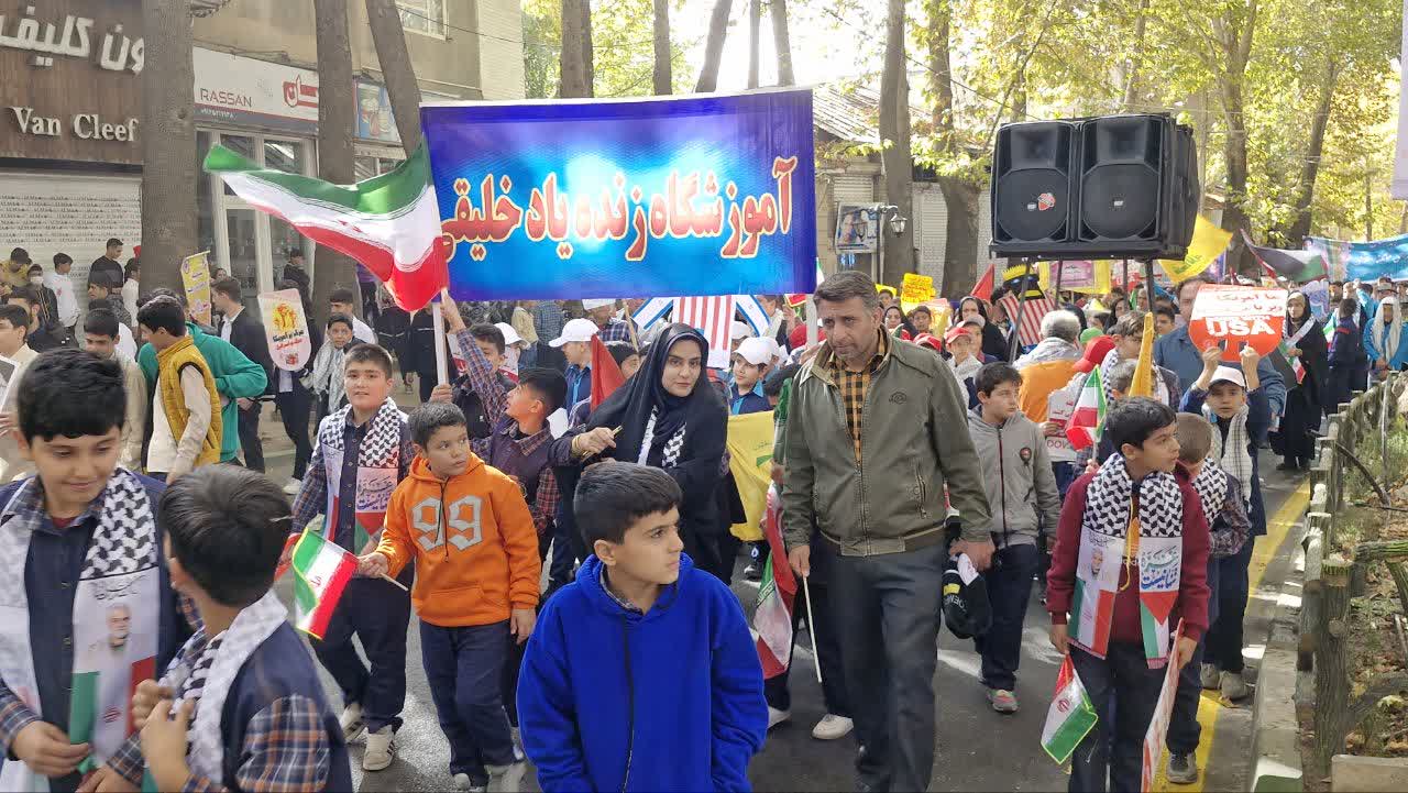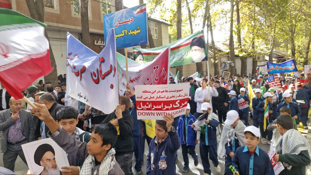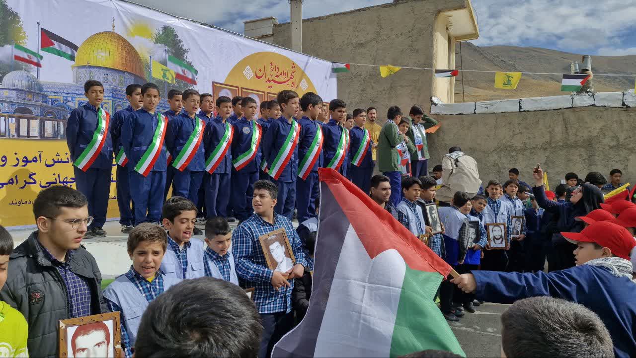 در این مراسم دانش آموزان دماوندی با شعارهایی علیه استکبار جهانی انزجار خود را نشان دادند.