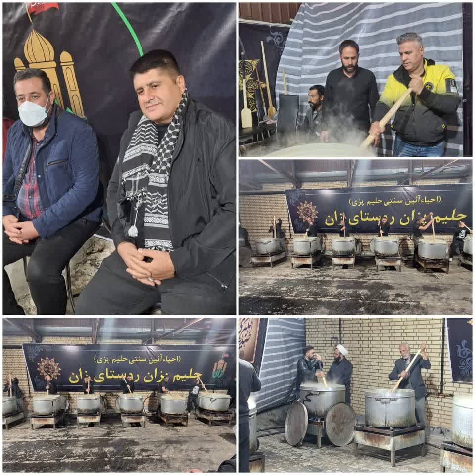 يكی از كارهايی كه محبان اهل بيت(ع) در روستای زان همزمان با ایام شهادت خاندان عصمت و طهارت(ع) انجام میدهند و قدمتی ديرينه هم دارد آیین حلیمپزان است.
