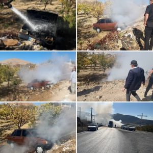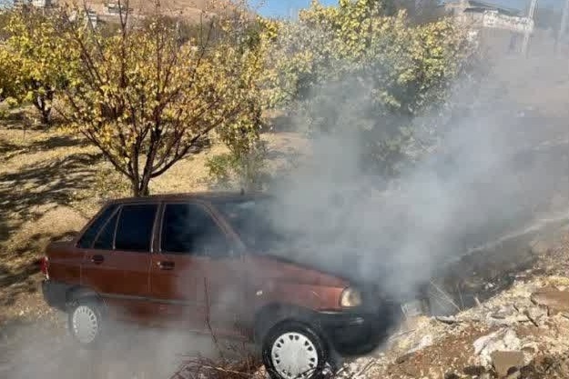 آتشسوزی خودروی پراید در مسیر روستای بیدک تقاطع روستای وادان
