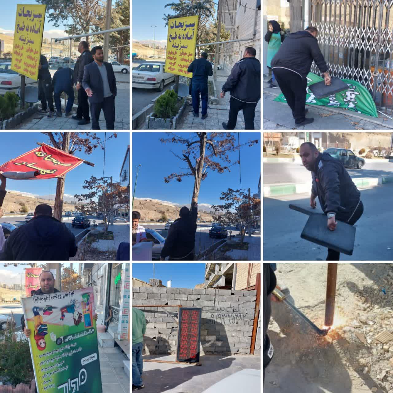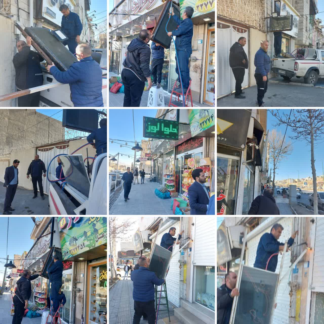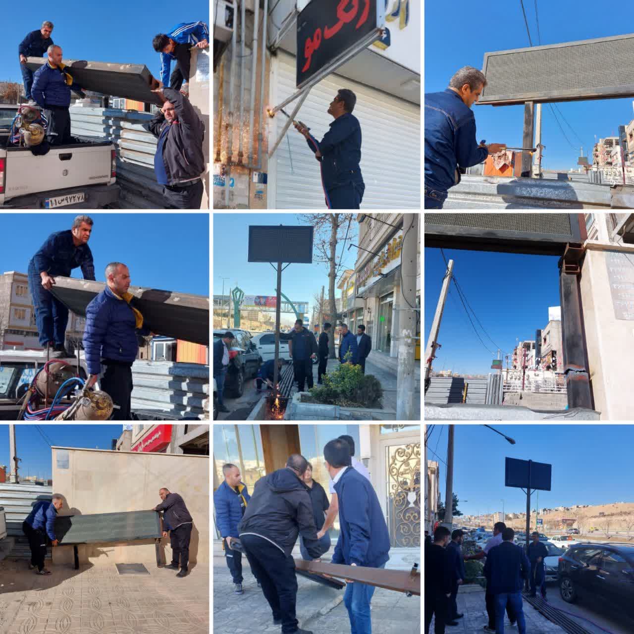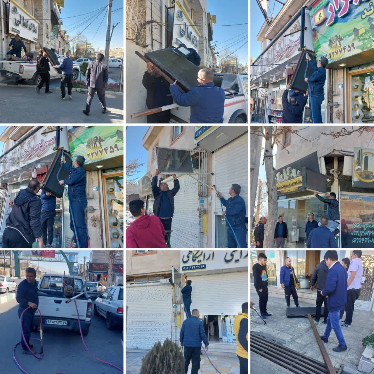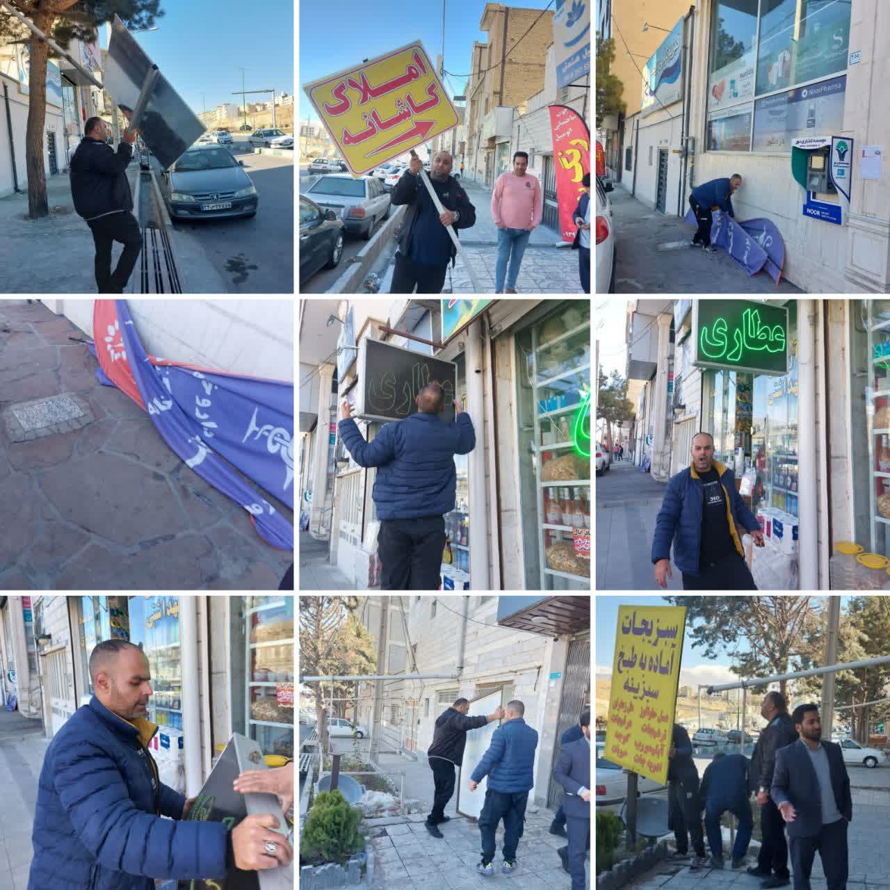 اجرای طرح جمع‌آوری تابلوهای غیر‌مجاز تبلیغاتی و رفع سد معبر در بلوار ۶۰ متری بعثت منطقه گیلاوند