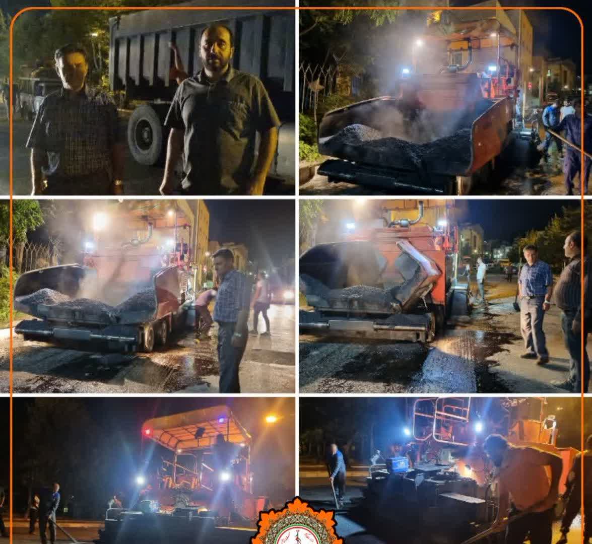 اجرای عملیات بهسازی و روکش آسفالت خیابان شهید فخریزاده در شهرک فرهنگیان منطقه گیلاوند