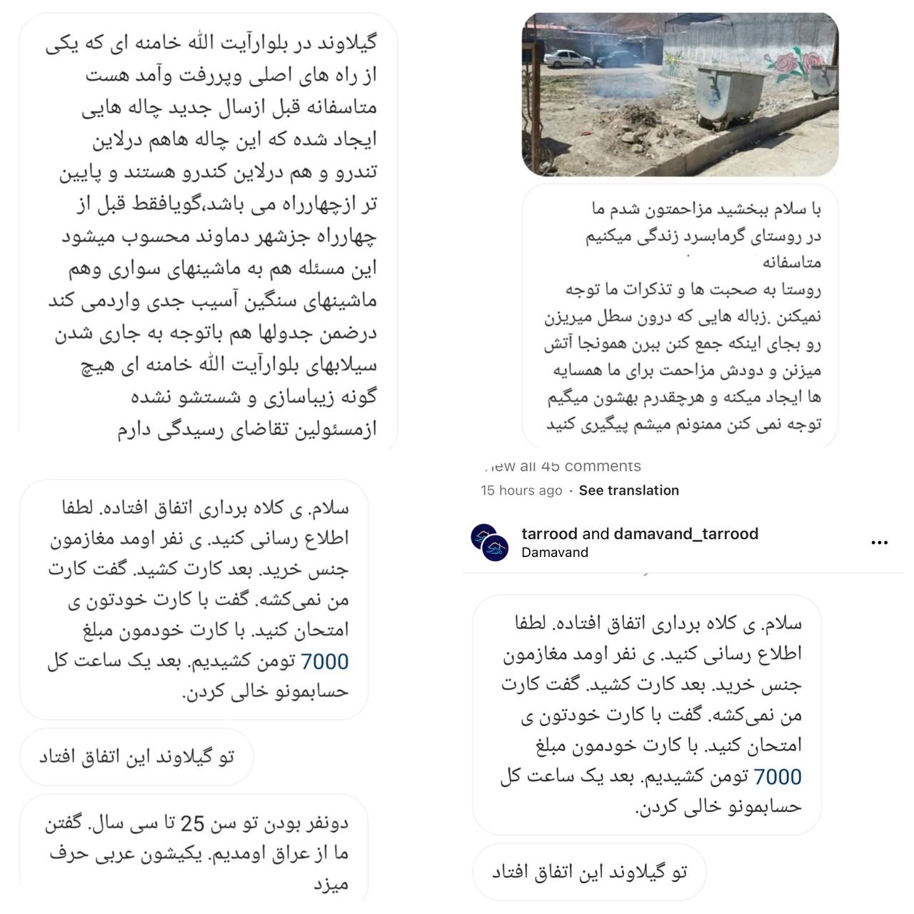 شهروندان شهرستان دماوند مشکلات شهر را از طرق مختلف به گوش مسئولان می‌رسانند که در پایگاه خبری تارود و شبکه‌های اجتماعی منعکس می‌گردد.