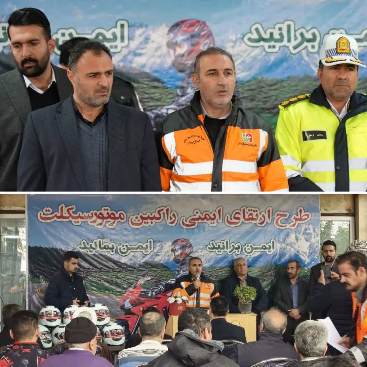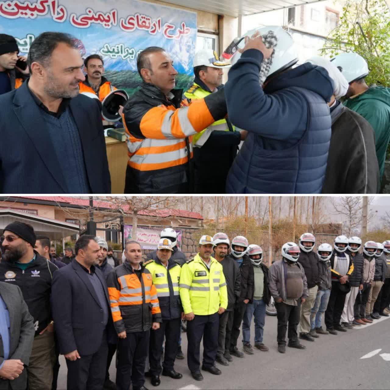 اهدای ۱۰۰ کلاه ایمنی رایگان به موتورسیکلتسواران در روستای آیینهورزان دماوند
