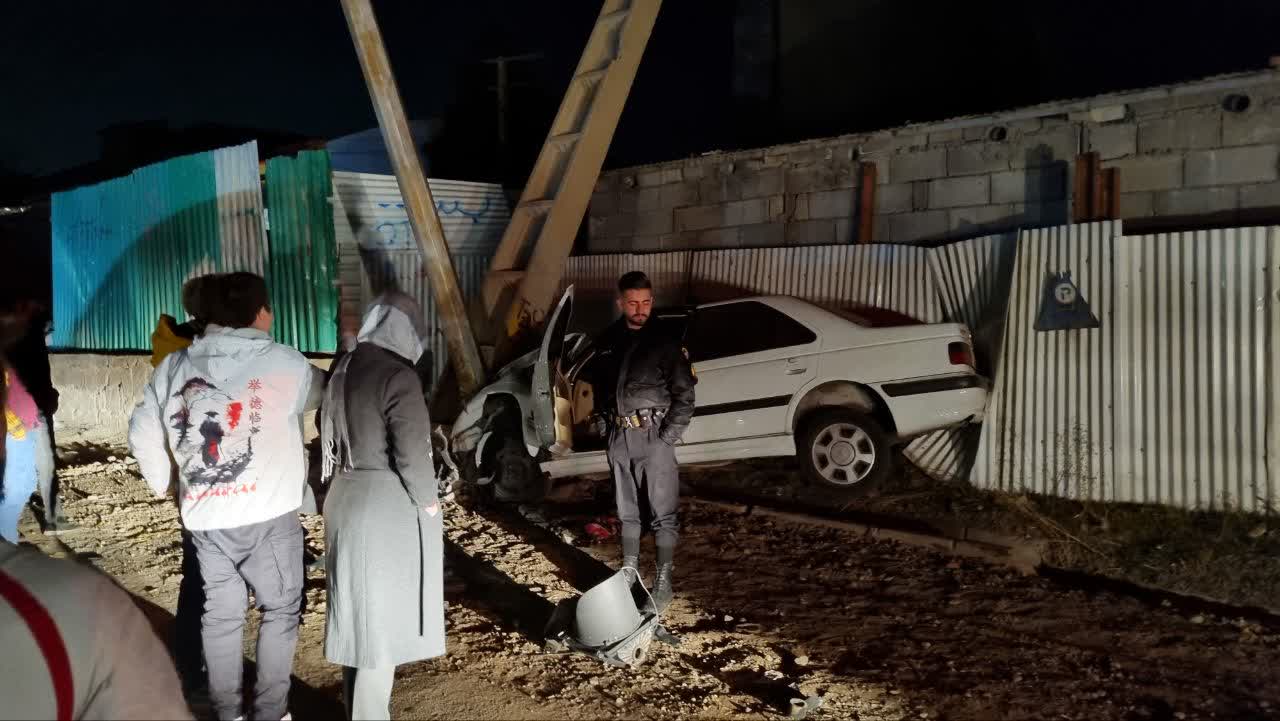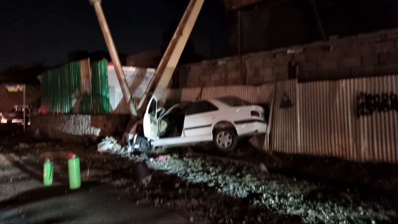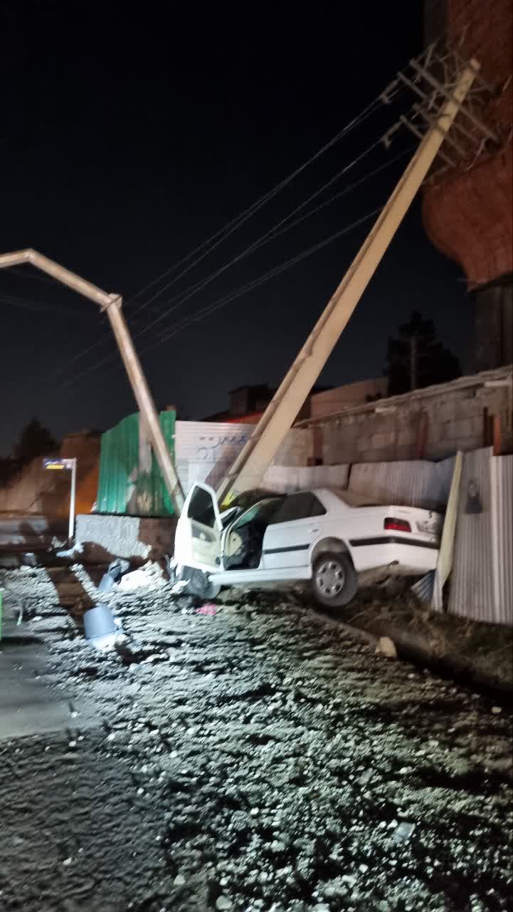 برخورد خودرو سواری پژو پارس با تیر برق در بلوار بهشتی به سمت گیلاوند/ در اثر وقوع حادثه برق ساکنین شهر دماوند قطع شده است