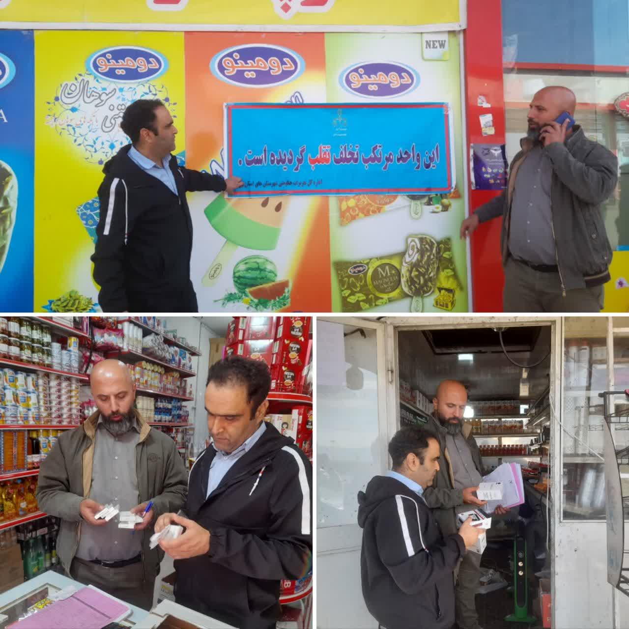 برخورد گشت مشترک تعزیرات حکومتی با ۵ واحد صنفی متخلف در منطقه گیلاوند و رودهن/ نصب بنر به دلیل تقلب یک واحد صنفی در منطقه کلاهگ