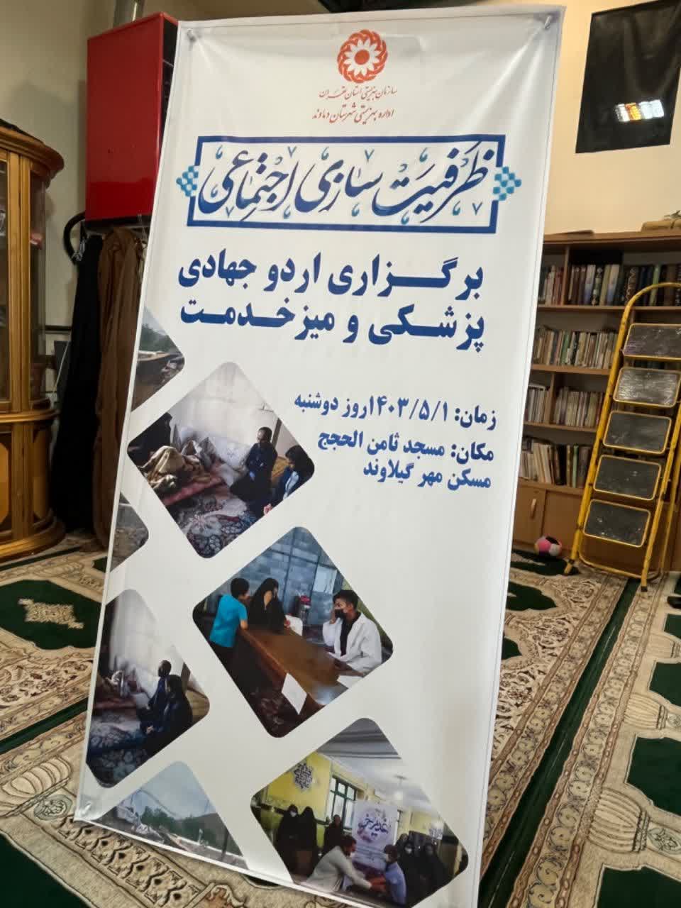 برپایی اردوی جهادی پزشکی و میز خدمت به مناسبت هفته بهزیستی در شهرک مسکن مهر گیلاوند