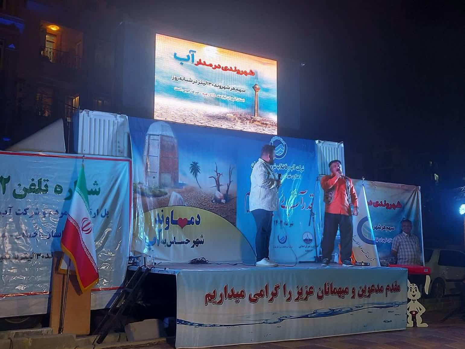 سید احمد حسینی مدیر روابط عمومی آبفای شرق تهران، در این برنامه شاد فعالیتهای مفرح فرهنگی، آموزشی با اجرای گروه نمایش عروسکی، موسیقی زنده، شعبده بازی، مسابقات متنوع آموزشی پیرامون راههای صرفهجویی در مصرف آب و توزیع اقلام آموزشی و اهدای جوایز به مرحله اجرا در آمد.