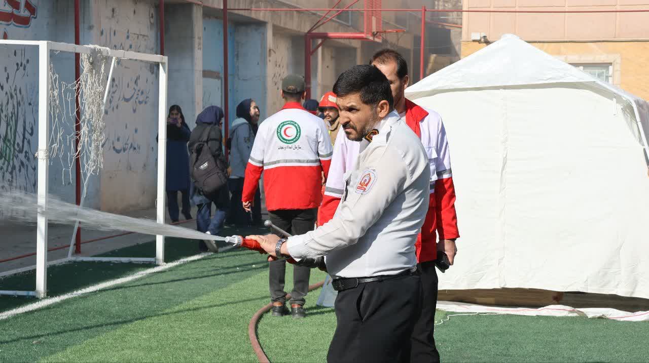 همچنین، آتش‌نشانی با اجرای عملیات اطفای حریق نمایشی، اهمیت آمادگی و سرعت عمل در شرایط بحرانی را به نمایش گذاشت.