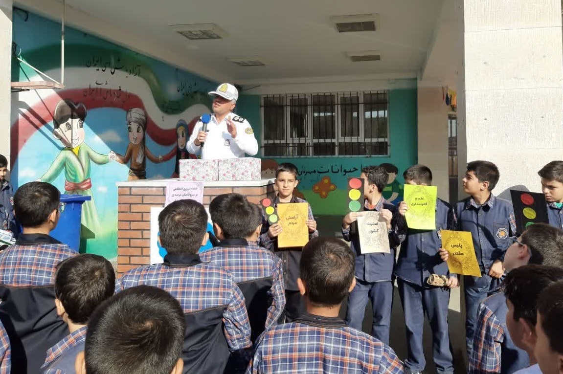 به مناسبت هفته نیروی انتظامی، مدرسه ابتدایی زندهیاد خلیقی منطقه گیلاوند در فضایی پرشور و صمیمی میزبان سرهنگ اردستانی، رئیس پلیس راهور شهرستان دماوند، بود.