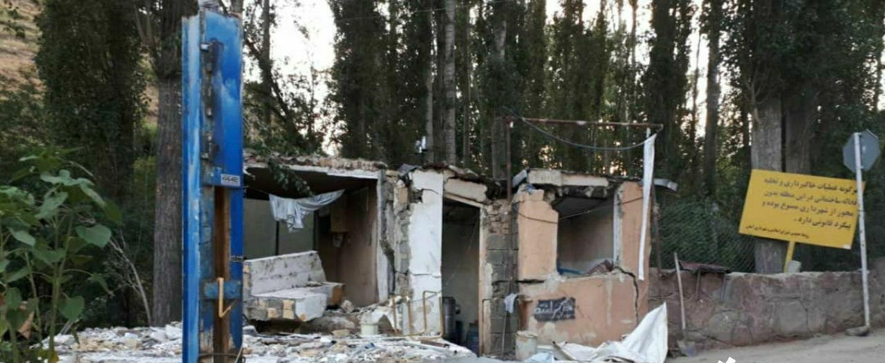 اتاق نگهبانی ورودی منطقه هزاردشت شهر آبعلی با توجه به ممانعت از ورود عموم با دستور قضایی تخریب شد.