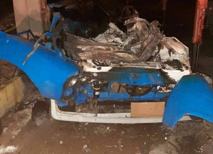 یک کیلومتر جلوتر از ورودی شهر آبسرد و نزدیک باغی معروف به باغ سرهنگ خودرو با رگبار متوقف میشود و پس از آن یک نیسان که در آن پر از الوارهای چوبی بوده است منفجر میشود.