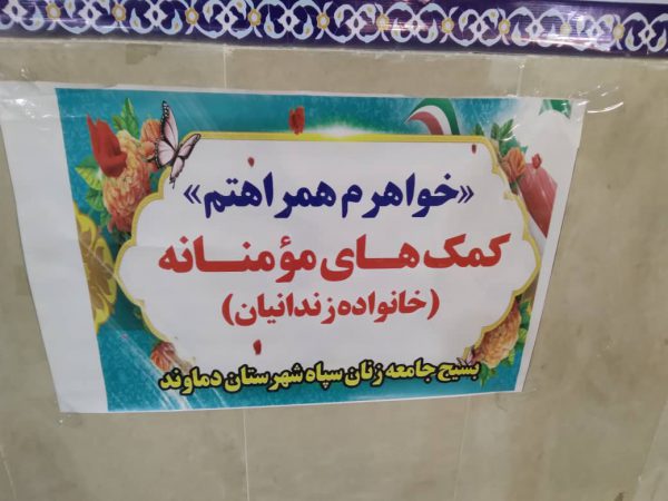 فرمانده سپاه ناحیه مقاومت بسیج شهرستان دماوند بیان کرد: این بستههای معیشتی در بین اقشار مختلف نیازمندان همچون خانوادههای نیازمند زندانیان بود که با همکاری کانون حمایت از زندانیان توسط دفتر بسیج جامعه زنان سپاه شهرستان دماوند توزیع شد که برای این اقشار بیش از ۱۰۰ بسته معیشتی اهدا گردید.