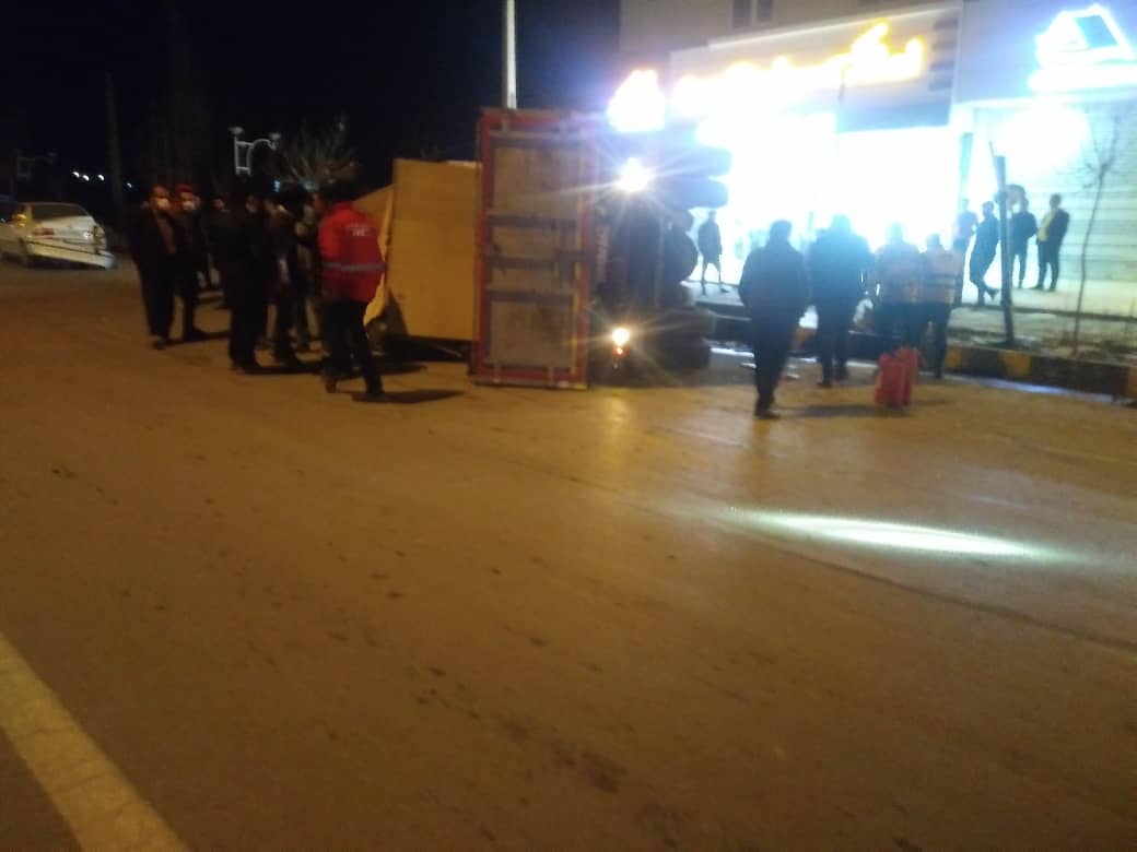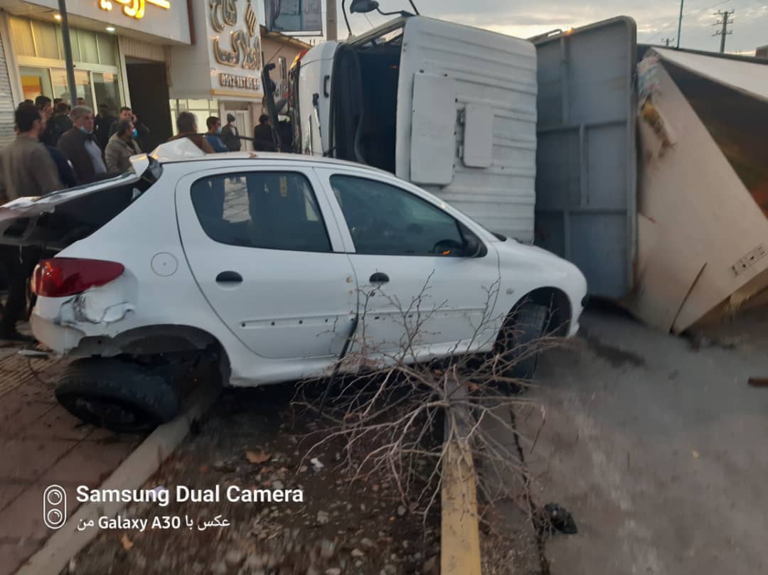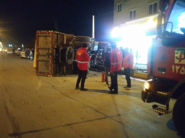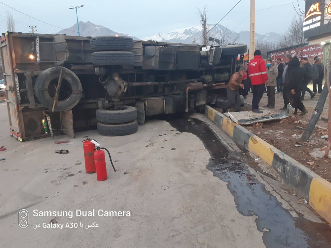 عدم توانایی راننده در کنترل وسیله نقلیه منجر به واژگونی و تصادف کامیون با سه خودرو سواری در بلوار امام خمینی(ره) شهر آبسرد شد.