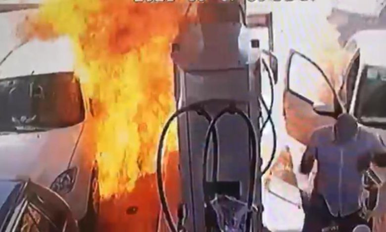 حریق خودرو سواری تیبا در جایگاه سوخت بعثت گیلاوند