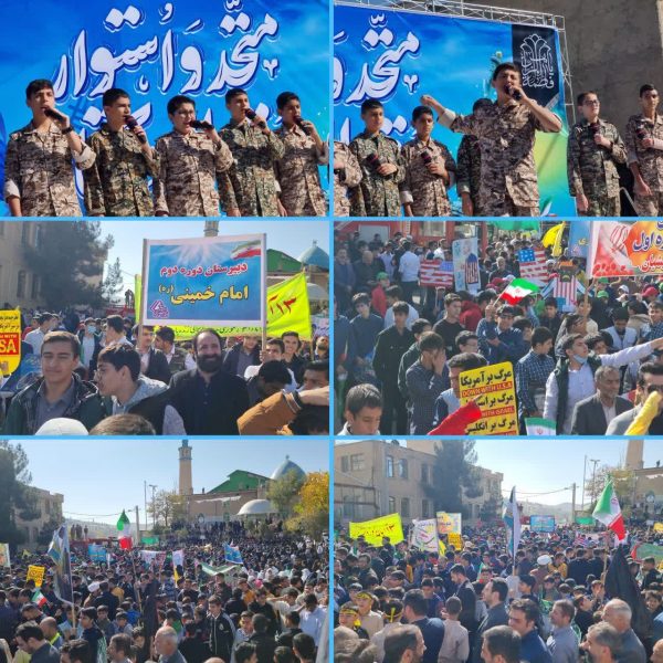 شرکتکنندگان با در دست داشتن پرچمهای سهرنگ جمهوری اسلامی ایران و پلاکاردهای ضد استکباری، فریادهای “مرگ بر آمریکا” و “مرگ بر اسرائیل” را سر دادند و یکبار دیگر خشم مقدس خود از ظلم جهانی را به نمایش گذاشتند.
