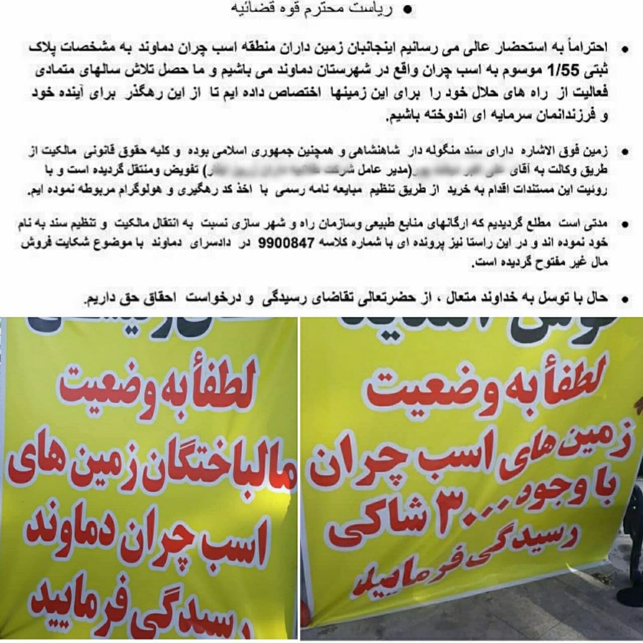از مسئولین قضایی دماوند استدعا داریم به این مسئله رسیدگی کنند.