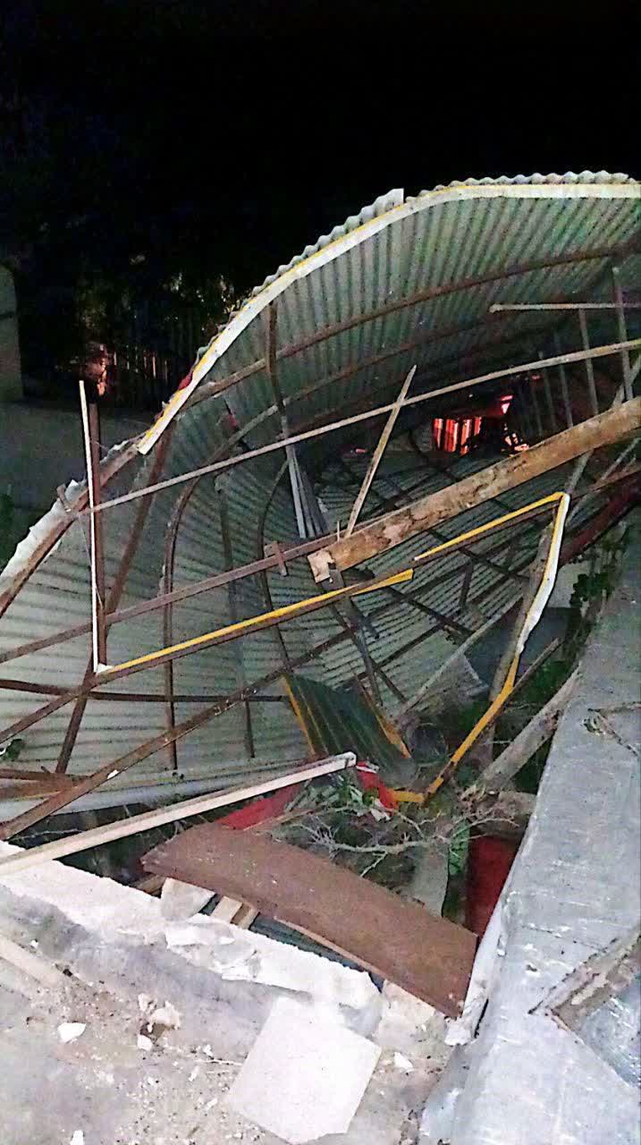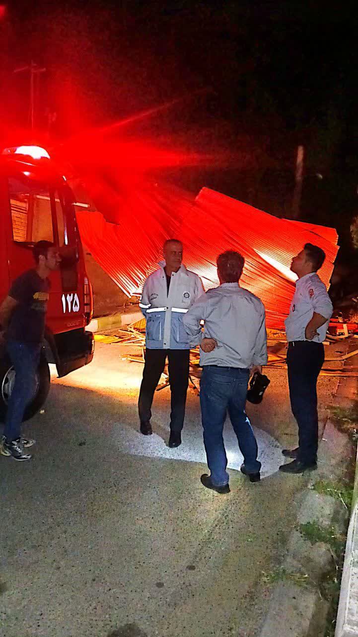 شدت طوفان شامگاه یکشنبه باعث کنده شدن و جابجایی چند ده متری شیروانی یک ساختمان مسکونی و نهایتاً برخورد آن با تجهیزات ادارات خدمات رسان و ساختمانهای مجاور در محله ساران شد.