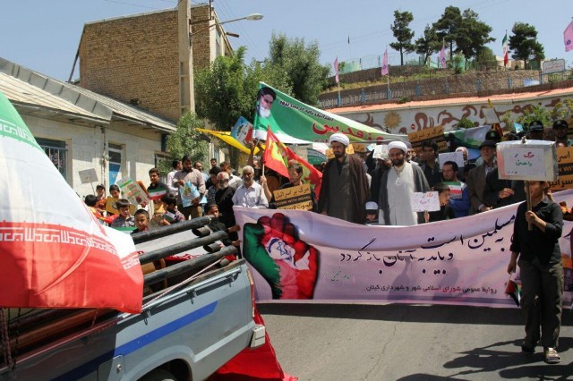 مردم انقلابی و مؤمن کیلان در کنار دیگر مسلمانان همچون سالهای گذشته هرچه باشکوهتر در راهپیمایی روز قدس شرکت کردهاند و این راهپیمایی با توجه به مذاکرات هستهای ۱+۵ که در وین در حال انجام است، میتواند پرشورترین راهپیمایی روز جهانی قدس تاریخ جمهوری اسلامی ایران محسوب شود.