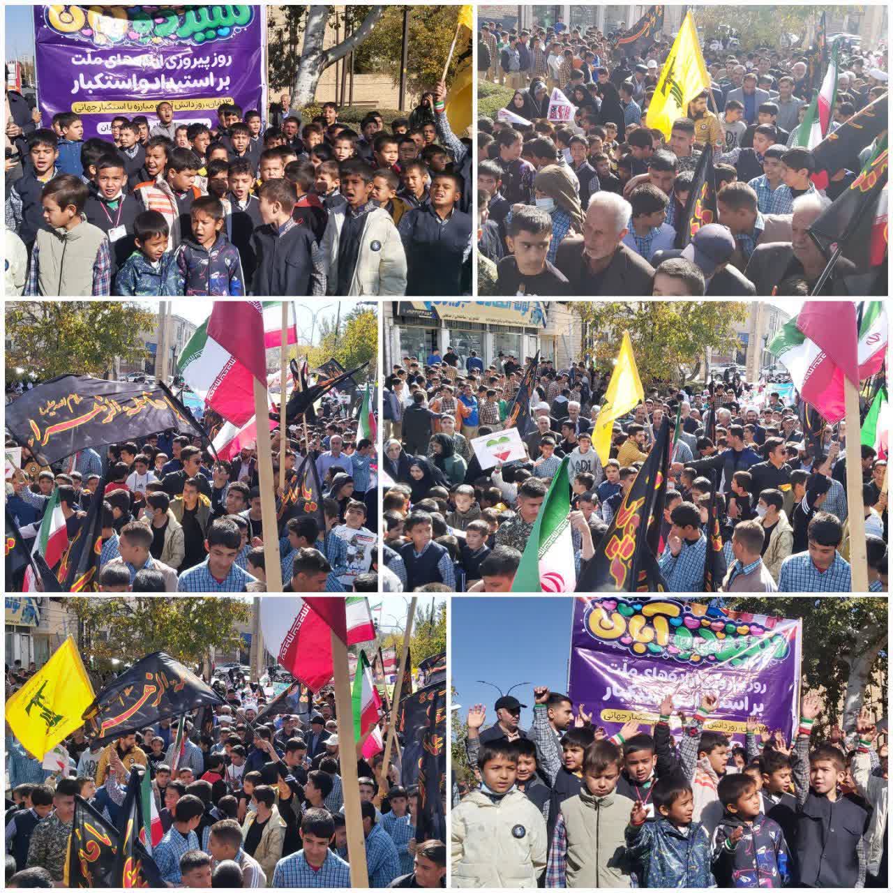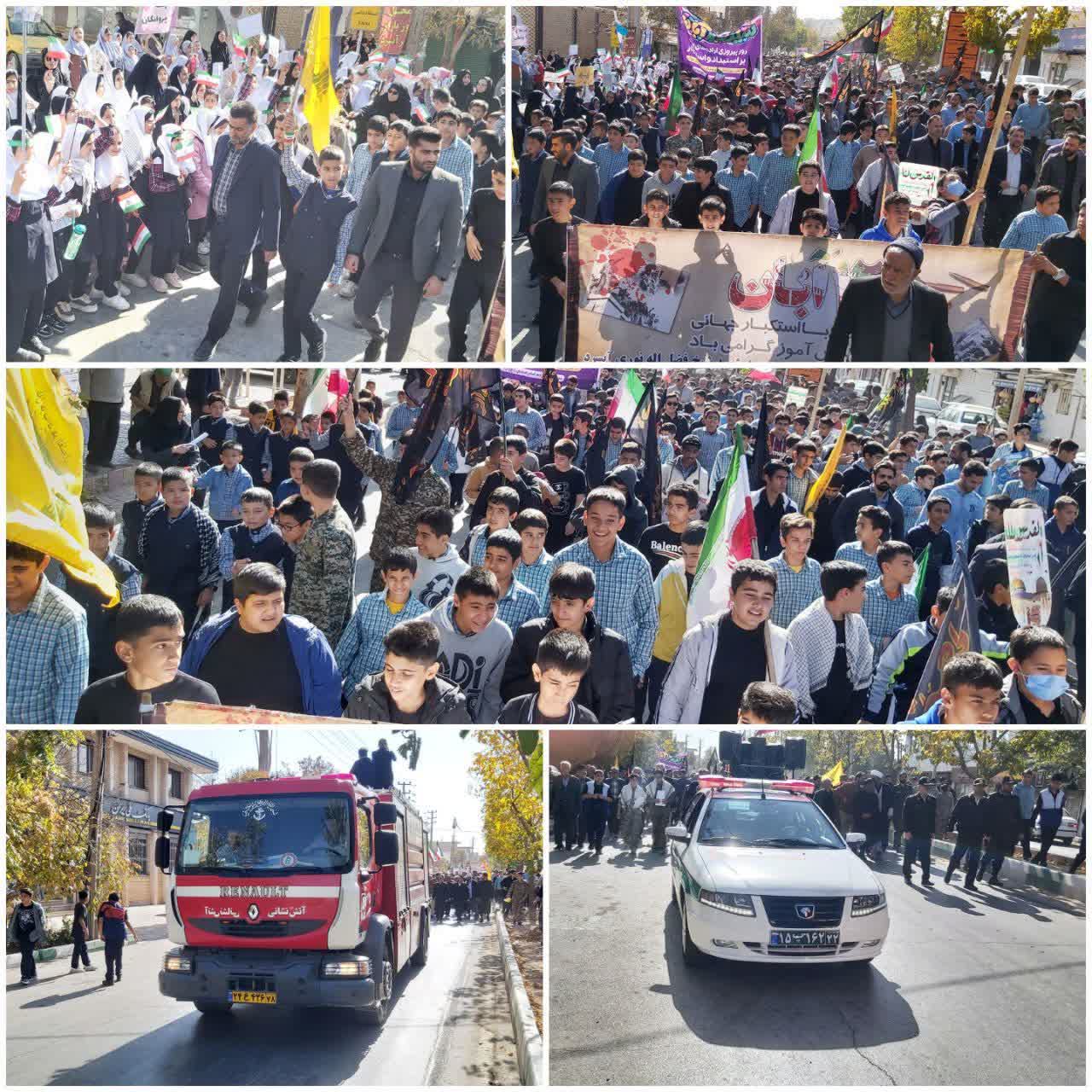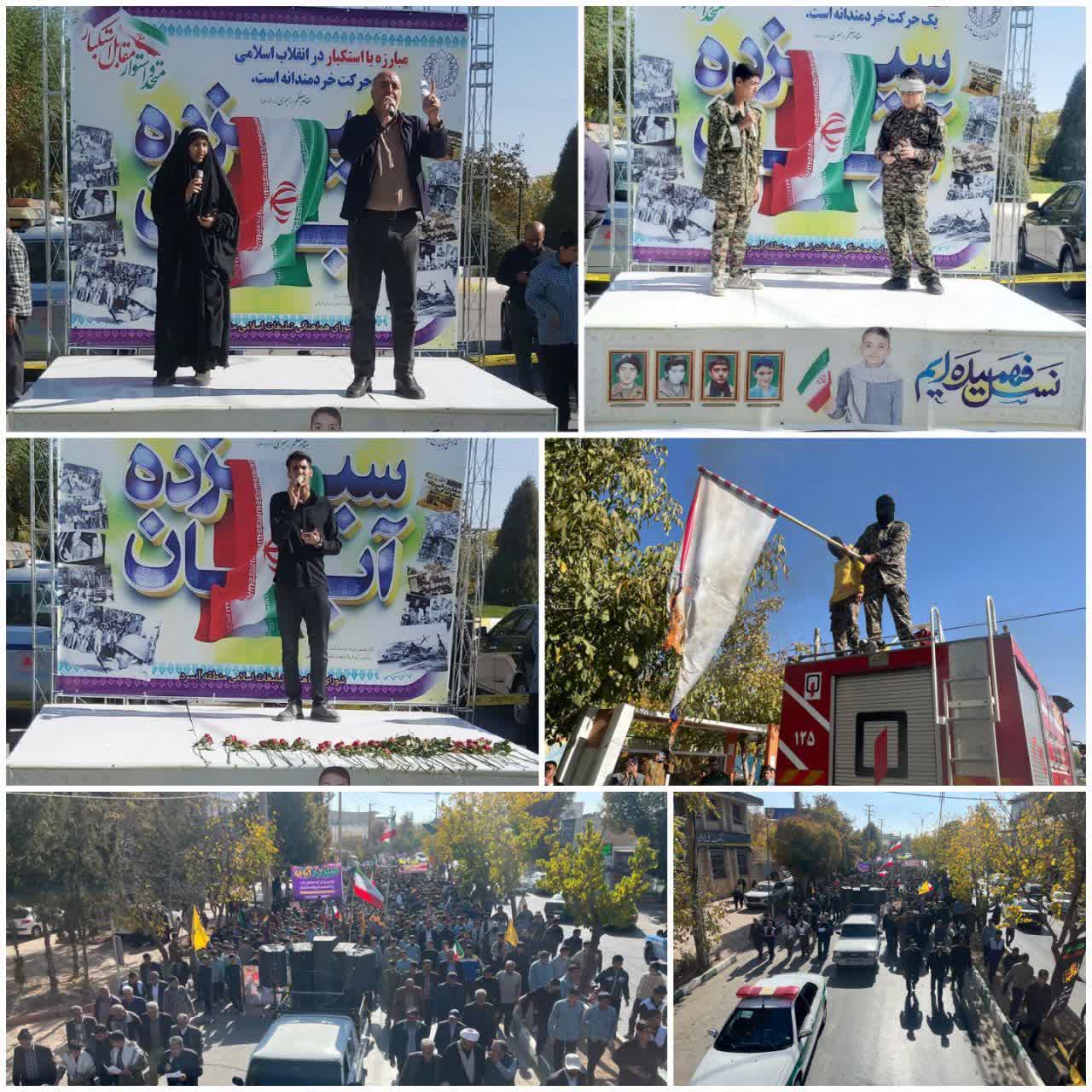 همزمان با سراسر کشور، مراسم راهپیمایی سیزدهم آبانماه، سالروز تسخیر لانه جاسوسی آمریکا و روز دانشآموز، صبح امروز با حضور گسترده مردم و دانشآموزان در شهر آبسرد برگزار شد.