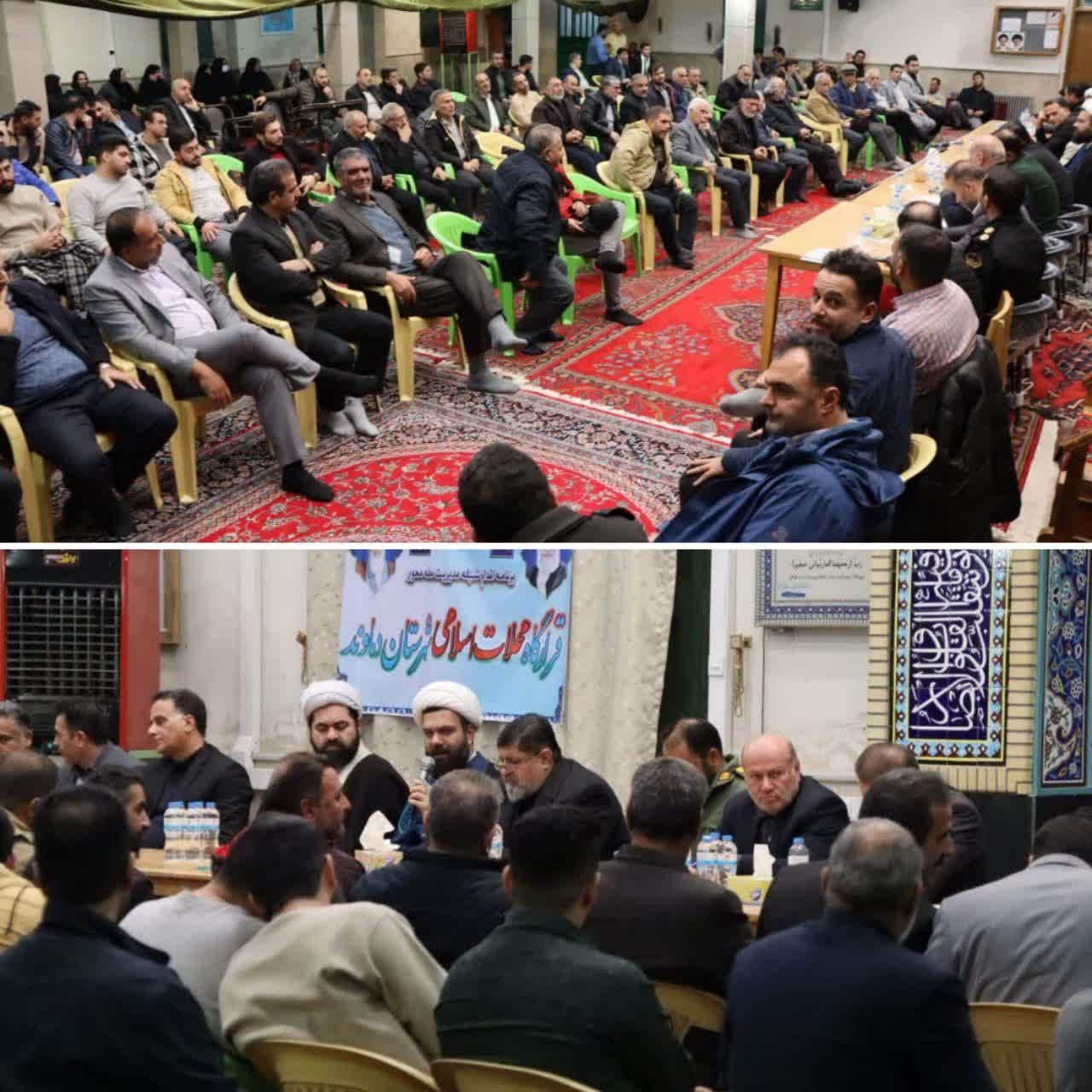 به گزارش پایگاه خبری تارود، این نشست با حضور حجتالاسلام ظاهری امام جمعه آبسرد، رحیمی فرمانده سپاه شهرستان دماوند، آرمودیان معاون سیاسی فرماندار، سلطانآهی معاون فنی و عمرانی فرماندار، حسینپور بخشدار مرکزی دماوند، درویش مسئول بازرسی فرمانداری دماوند، کریمانی مسئول امور مساجد شرق استان تهران، جمعی از نیروهای نظامی و انتظامی، شهردار و اعضای شورای اسلامی شهر آبسرد و رؤسای دستگاههای اجرایی و خدماترسان شهرستان برگزار شد.