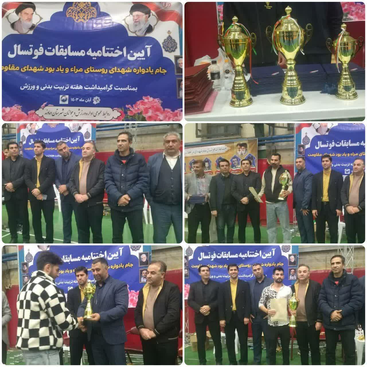 در مراسم اختتامیه با حضور یزدانی سرپرست اداره ورزش و جوانان، شاه بندی رئیس هیات فوتبال شهرستان دماوند، دهیار و اعضای شورای اسلامی روستای مراء، خانواده‌های شهدا، پیشکسوتان و ورزشکاران با اهداء حکم و کاپ قهرمانی و هدیه از تیم‌های برتر مسابقات تقدیر به عمل آمد.