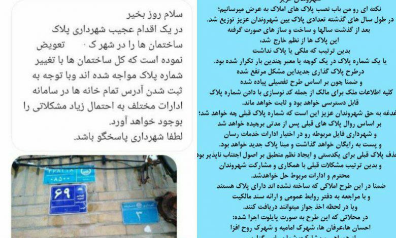 ماجرای تغییر پلاک ساختمانها و نگرانی شهروندان دماوندی/ کرداری: طرح پلاک گذاری جدید مشکلات بینظمی و پلاکهای تکراری را مرتفع میکند