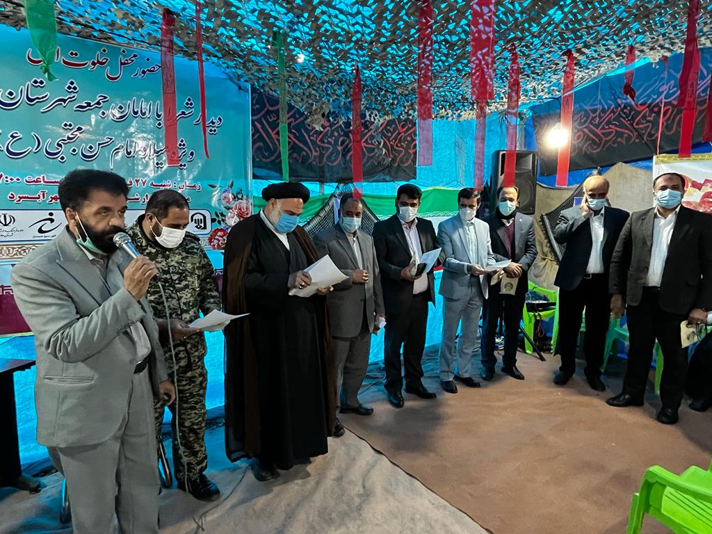 به گزارش پایگاه خبری تارود دماوند، حجت الاسلام والمسلمین میر شریفی، امام جمعه شهر آبسرد و حومه، مسئول بنیاد حفظ آثار و نشر ارزشهای دفاع مقدس شرق استان تهران، سرپرست شهرداری و اعضای شورای اسلامی شهر آبسرد، روسای اداره فرهنگ و ارشاد اسلامی و نهاد کتابخانه های عمومی شهرستان دماوند، فرماندهی بسیج حوزه ۳ امام حسن مجتبی(ع)و جمعی از شعرا در این مراسم حضور داشتند.