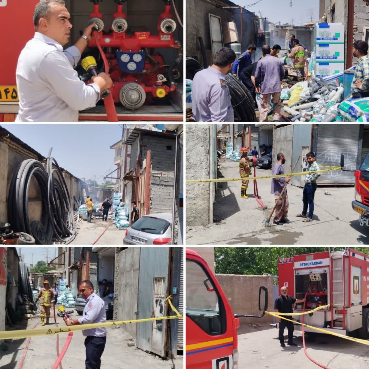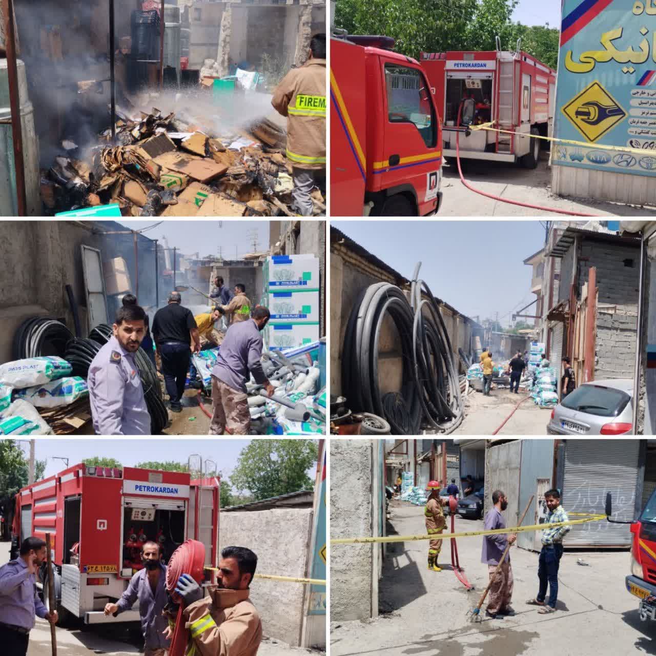 مهار آتشسوزی یک انبار پلاستیک توسط آتشنشانی در منطقه گیلاوند
