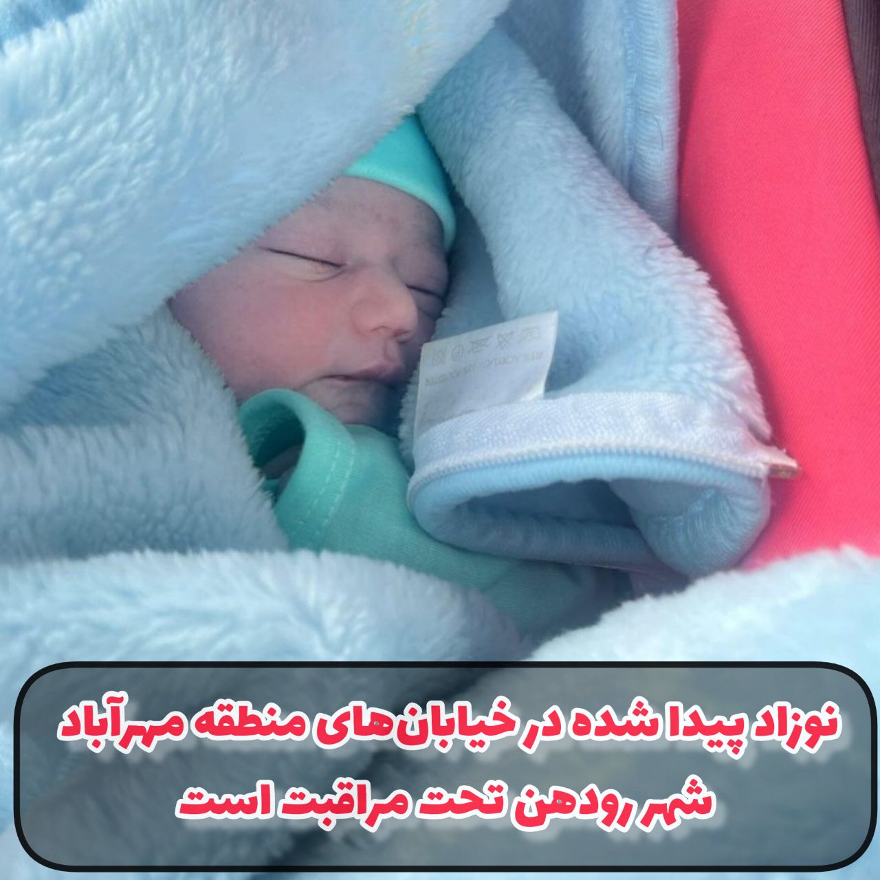 نوزاد پیدا شده در خیابانهای منطقه مهرآباد شهر رودهن تحت مراقبت است.
