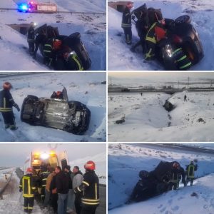 یک دستگاه سواری MVM در محور تهران–فیروزکوه بعد از روستای سیدآباد واژگون شد.