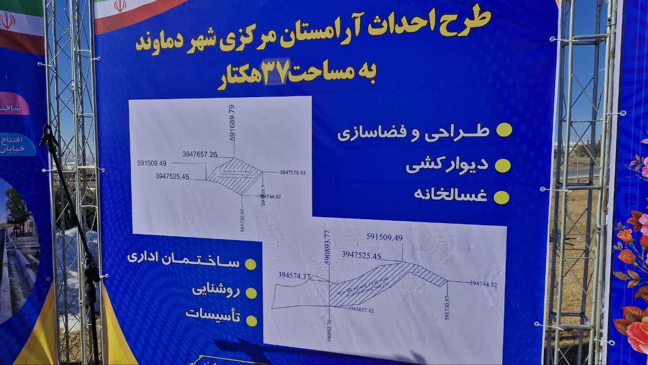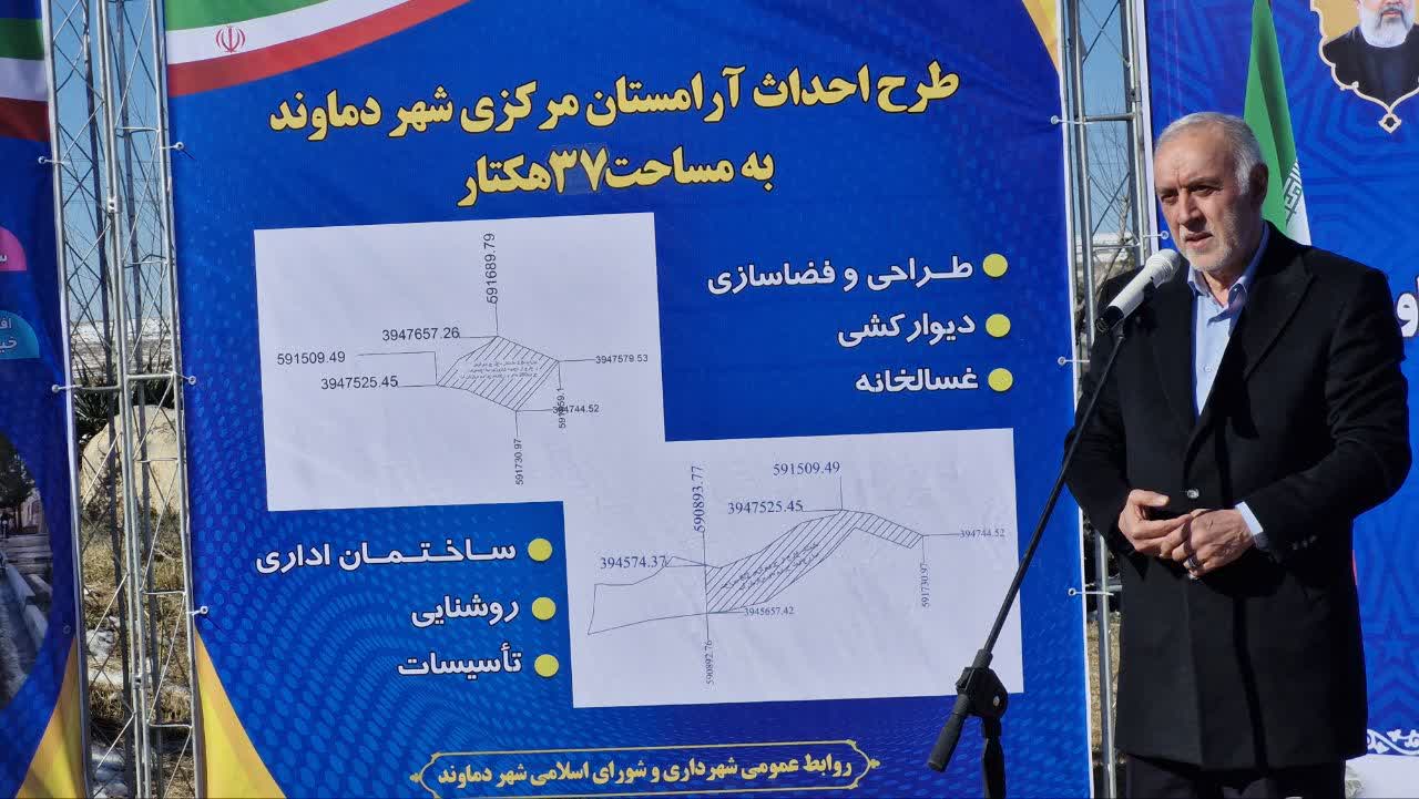 از سویی دیگر، با توجه به تکمیل ظرفیت آرامستان‌های شهر دماوند، طرح احداث آرامستان مرکزی شهر دماوند به مساحت ۳۷ هکتار در فاز نخست با 10 هکتار شامل طراحی و فضاسازی، دیوارکشی، غسالخانه، ساختمان اداری، روشنایی و تأسیسات با پیش‌بینی اعتبار ۱۵ میلیارد تومان در محدوده شهرک الهیه کلنگ‌زنی شد.