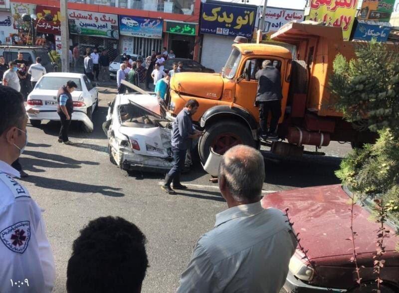 کامیون بی ترمز در بلوار آیتالله خامنهای منطقه گیلاوند چند خودرو را درهم کوبید.
