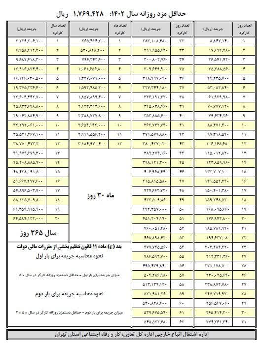وی تصریح کرد: بر این اساس هرگونه به کارگیری اتباع غیرمجاز روزانه ٨ میلیون و ۸۴۷ هزار و ۱۴۰ ریال و ماهانه ۲۶۵ میلیون و ۴۱۴ هزار و ۲۰۰ ریال جریمه در سال جاری در حق صندوق دولت در بر خواهد داشت که در صورت تکرار این میزان دو برابر خواهد شد.