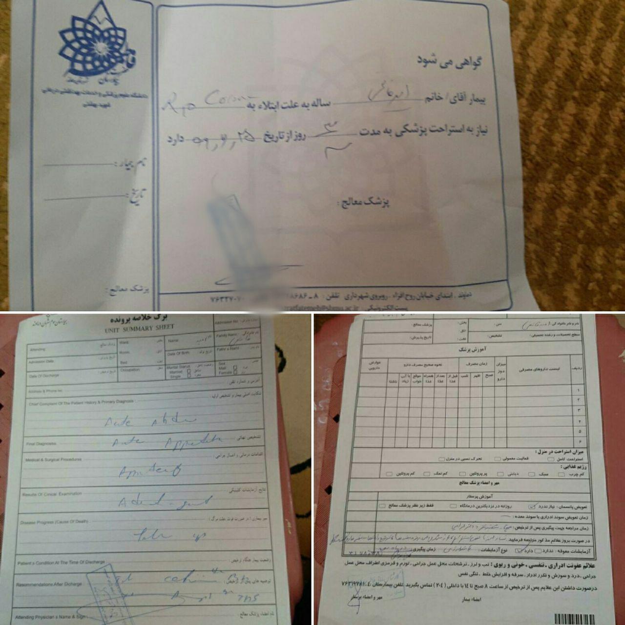 گزارش شهروندی از تشخیص اشتباه پزشکی آپاندیس بجای کرونا در بیمارستان حضرت فاطمه(س) دماوند