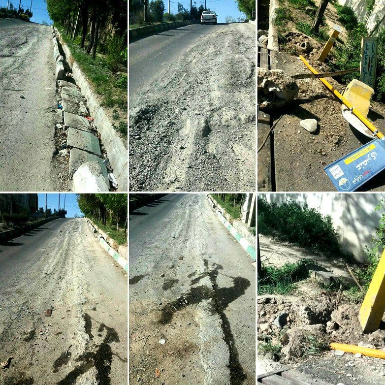 گلایه شهروندی نسبت به وضعیت نامناسب آسفالت معابر بلوار شاهد به سمت جاده مرا