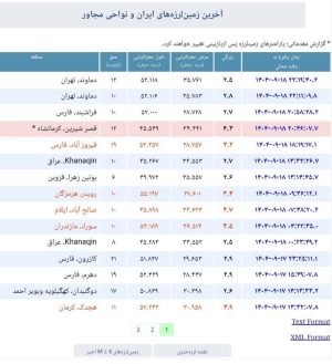 ۲ زمین‌لرزه خفیف شامگاه سه‌شنبه در شهرستان دماوند استان تهران به وقوع پیوست