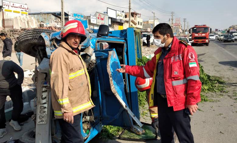 ۳ مصدوم در حادثه تصادف و واژگونی ۲ خودرو در محور فیروزکوه – دماوند نرسیده به پلشلمبه