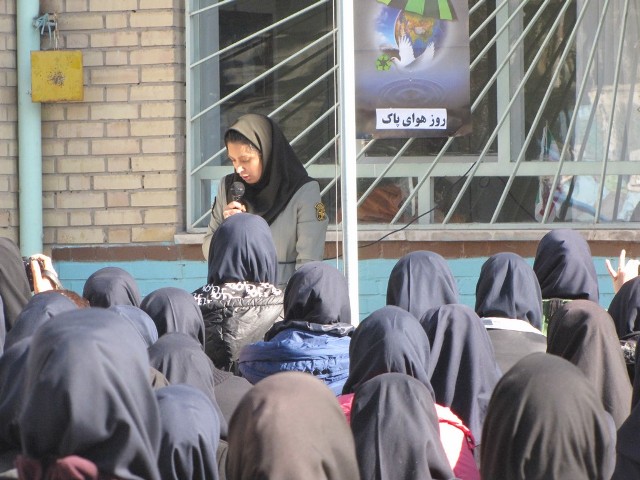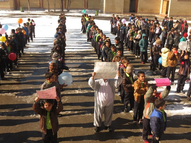 وی افزود: در این مراسم دانش آموزان با در دست داشتن نوشته هایی از جمله «دست در دست هم برای فراهم ساختن هوای پاک، هوای پاک مصرف بهینه انسان سالم» در صبحگاه بر ضرورت داشتن هوای پاک و یک زندگی سالم تاکید کردند.